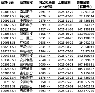 WIND数据显示,2025年共有19家A股公司登陆港股,合计募资1399.93亿港元,接近全年IPO总额的半壁江山,成为推动港股募资规模重返全球榜首的核心动力之一。从赛道分布看,这些A股企业覆盖新能源、高端制造、医药生物、消费升级等领域。