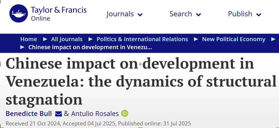 2024年10月21日,《Taylor&Francis Online》在“Chinese impact on development in Venezuela: the dynamics of structural stagnation”一文中介绍,中国与委内瑞拉的合作包括合资企业扩大到农业生产,中国还提供电信技术和基础设施升级,特别是在交通和能源领域。此外,合作还扩展到太空、人工智能技术,以及海军和安全领域,有报道称中企参与海上监控系统、港口基础设施和军事训练项目。