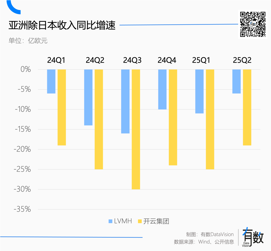 从奢侈品集团的经营看,按照最接近中国市场情况的“亚洲除日本”口径观测,2024年到现在,几乎没什么好消息。