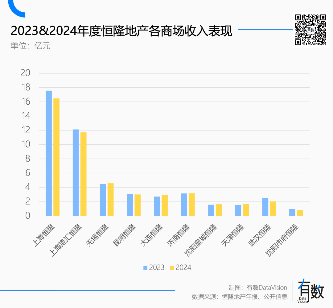 从恒隆地产的经营情况看,早在2024年,中国大陆各个商场的收入就呈现下滑趋势,2025年虽然有所回升,但整体依然没有回归增长趋势。