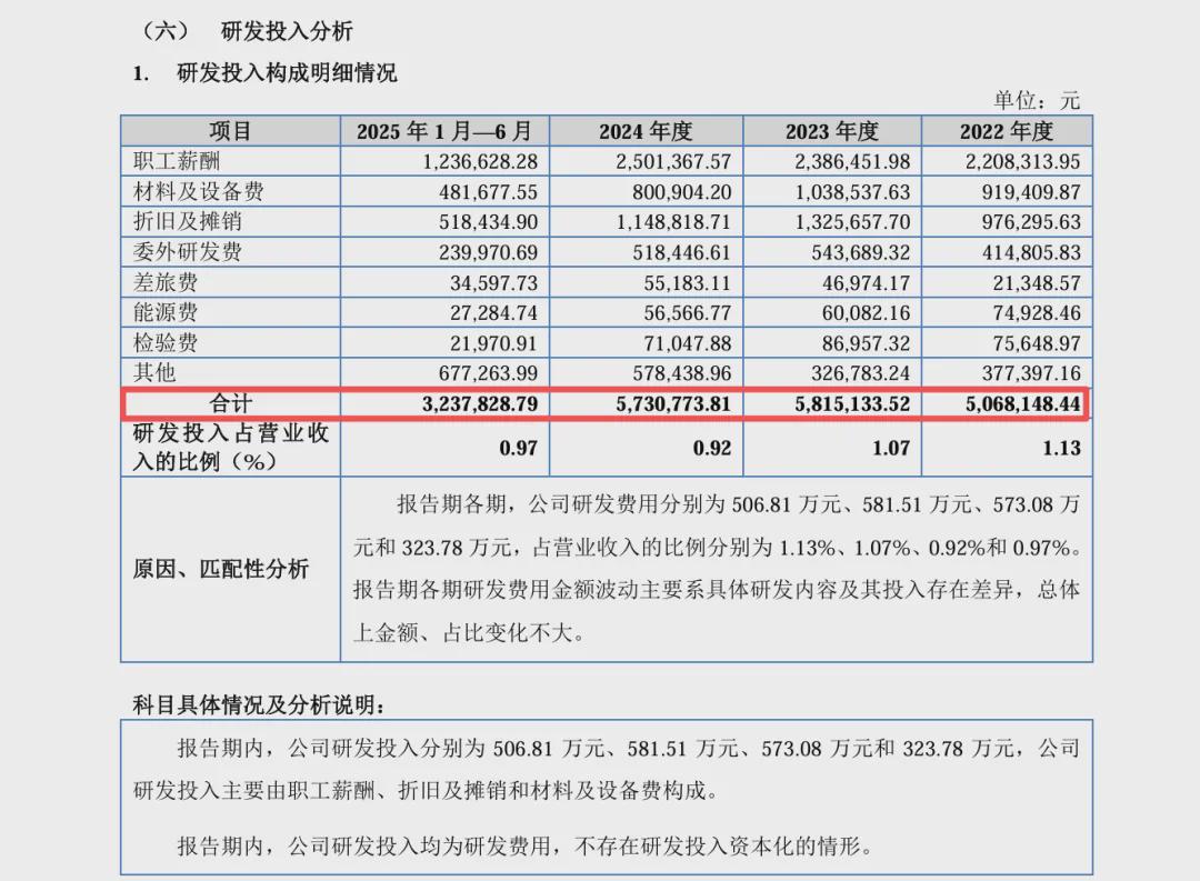 从此前申报深交所IPO和新三板挂牌时披露的从2022年至2024年平均每年皆接近千万的研发投入,到最新北交所上市申报材料中公布的同期皆仅500万上下的研发费用,两份累计三年差距超过1200万元的数据,哪一份才是真正准确的呢?