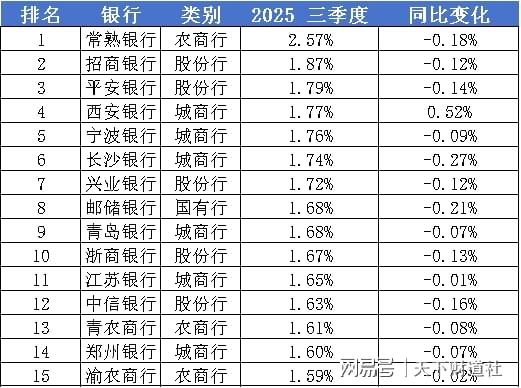 2025年前三季度净息差前15