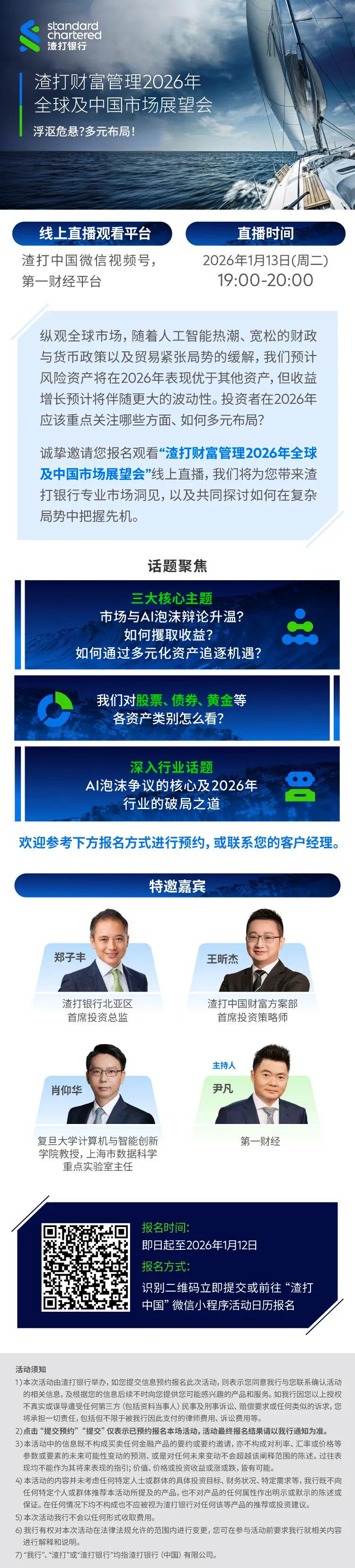 线上直播报名|1月13日渣打财富管理2026年全球及中国市场展望会— 浮沤危悬?多元布局!