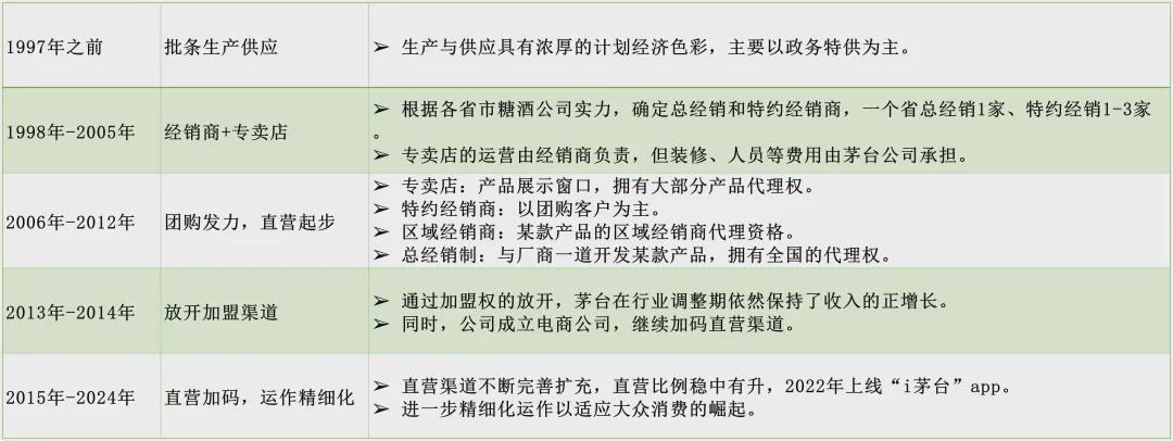回顾贵州茅台的渠道发展历程,大体可以分为5个阶段,如下图所示。
