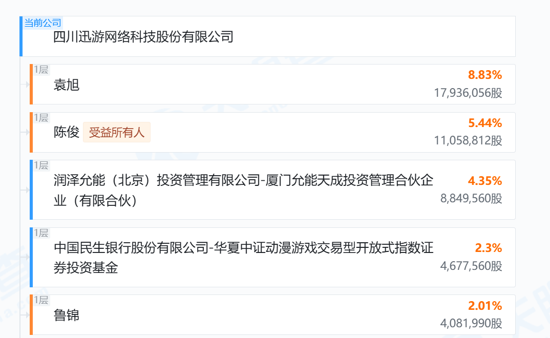公开信息显示,袁旭,1984年5月生,四川雅安人。14岁走上创业之路,高中毕业以优异成绩考入北大计算机系,一年后休学自主创业。2006年带领团队进入互联网加速市场,2011年至2022年任四川迅游网络科技有限公司总裁。现任迅游科技董事、西藏速沣创业投资有限责任公司执行董事。