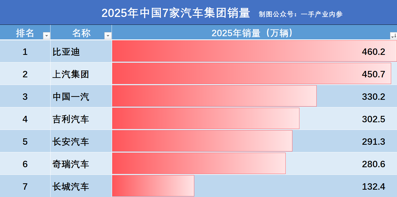 另附:2025年中国7大汽车集团销量表,数据源于:中国汽车报。