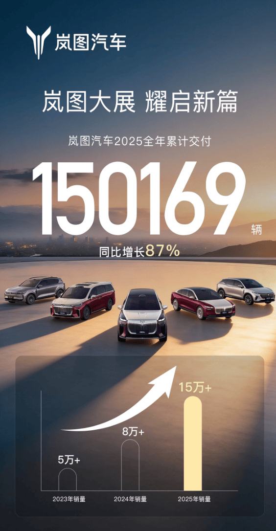 岚图2025年同比87%的交付量增速,在当下市场环境不算低。但它面临的压力也显而易见:国内市场竞争白热化,价格战一轮接一轮,海外市场开拓需要长期投入……
