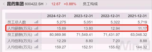 至于职工,根据万得大数据,至2024年末,职工总数超过5200人,去年人均创利12.3万元,人均税前薪酬为15.7万元,比2023年增加近2万元,这薪酬在医药行业中不算高,在昆明也不算低。