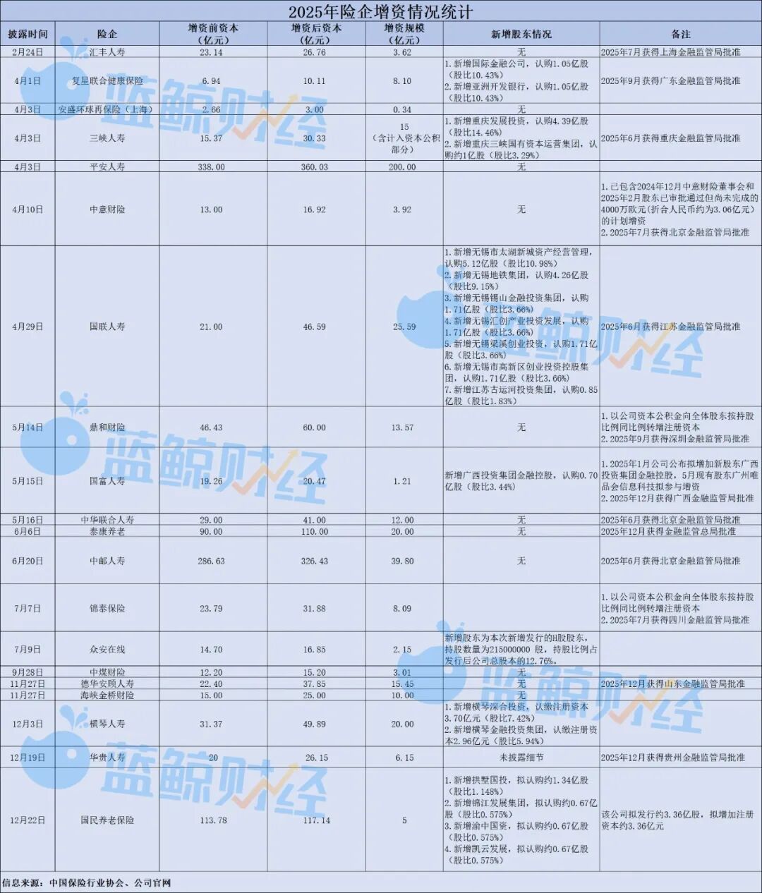 中小险企是主力,多数增资额度不超10亿
