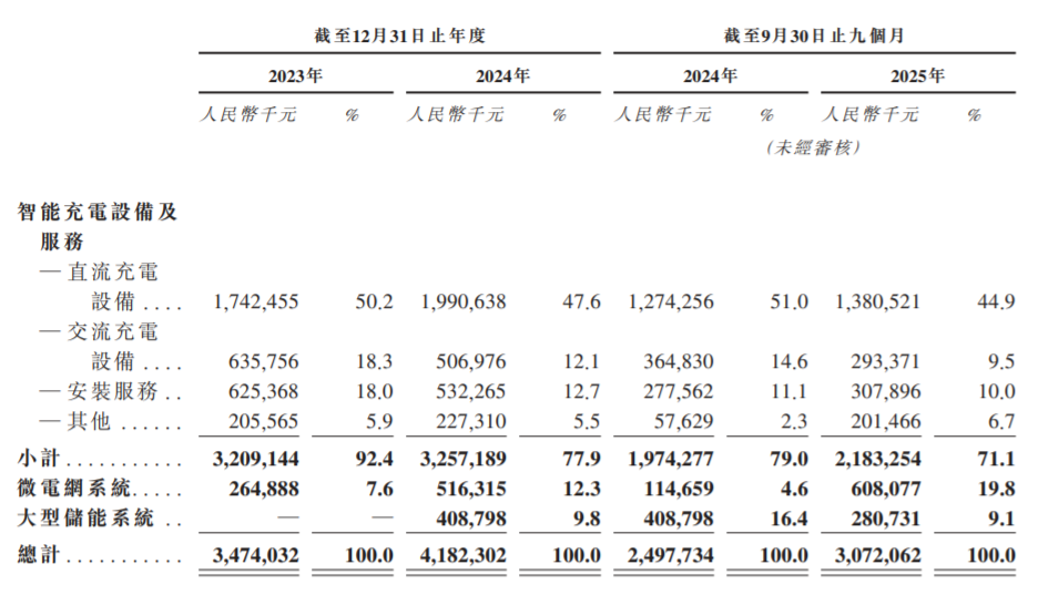 万帮数字能源的收入主要来自三块:智能充电设备及服务,微电网系统,以及大型储能系统,前者和后两者的占比大概七三开。