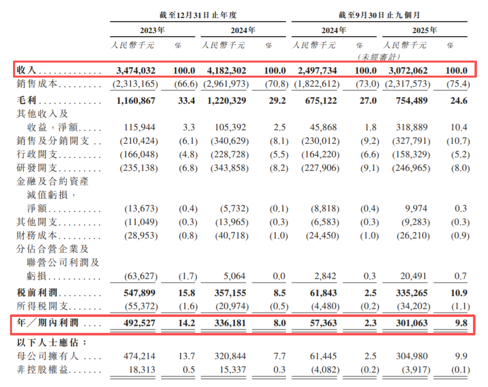 2023年、2024年和2025年前9个月,万帮数字能源分别实现营收34.74亿、41.82亿元和30.72亿;