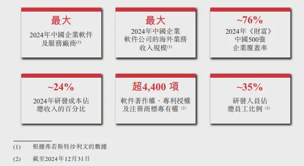 用友网络的市场地位比较显赫,据权威市场调研机构弗若斯特沙利文的统计,2024年按收入计,用友网络是中国企业软件及服务市场最大的市场参与者;按海外收入计,用友网络也是中国最大的境内企业软件公司。