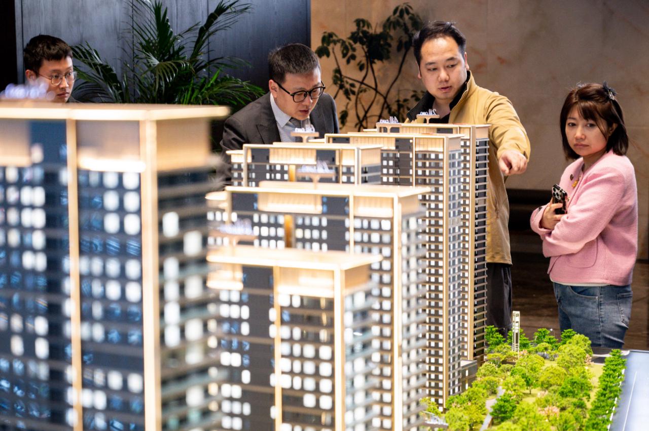 图为山西太原一处商品房小区的售楼部内,市民正在看房选房。(图片由CNSPHOTO提供)