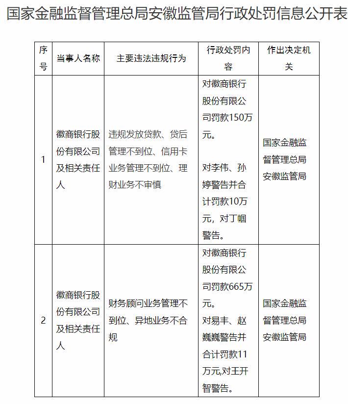 近日,国家金融监督管理总局安徽监管局对徽商银行股份有限公司及相关责任人开出的百万级罚单引发市场广泛关注。