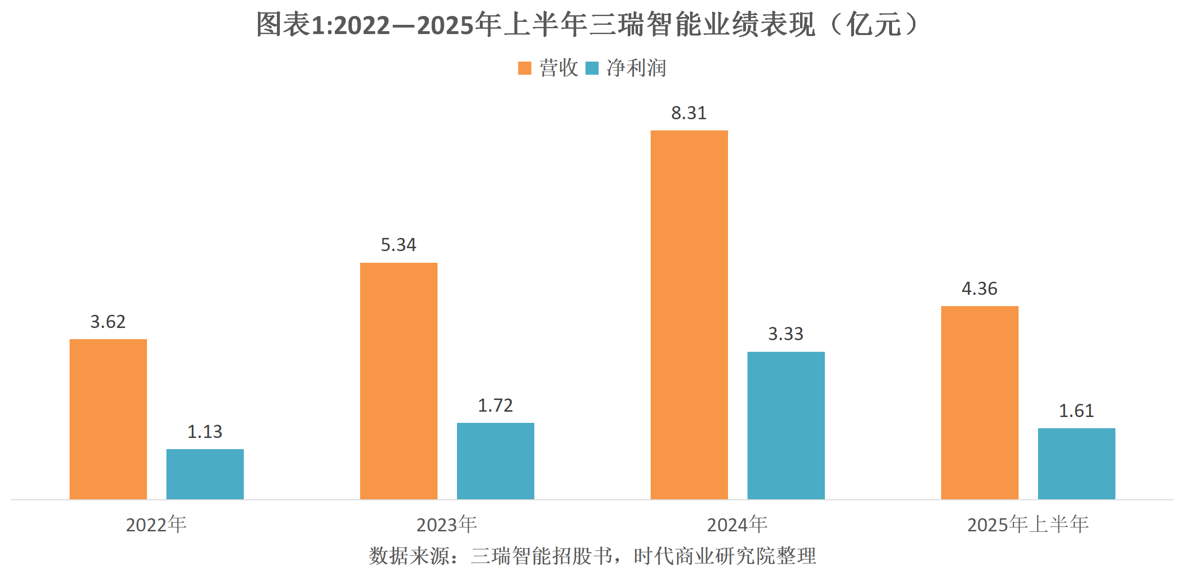 随着民用无人机需求高速发展,作为“无人机心脏”的动力系统需求也不断提升,推动三瑞智能业绩快速攀升。2024年其营收和净利润分别达8.31亿元、3.33亿元,2022—2024年复合增长率分别为51.64%、71.60%。