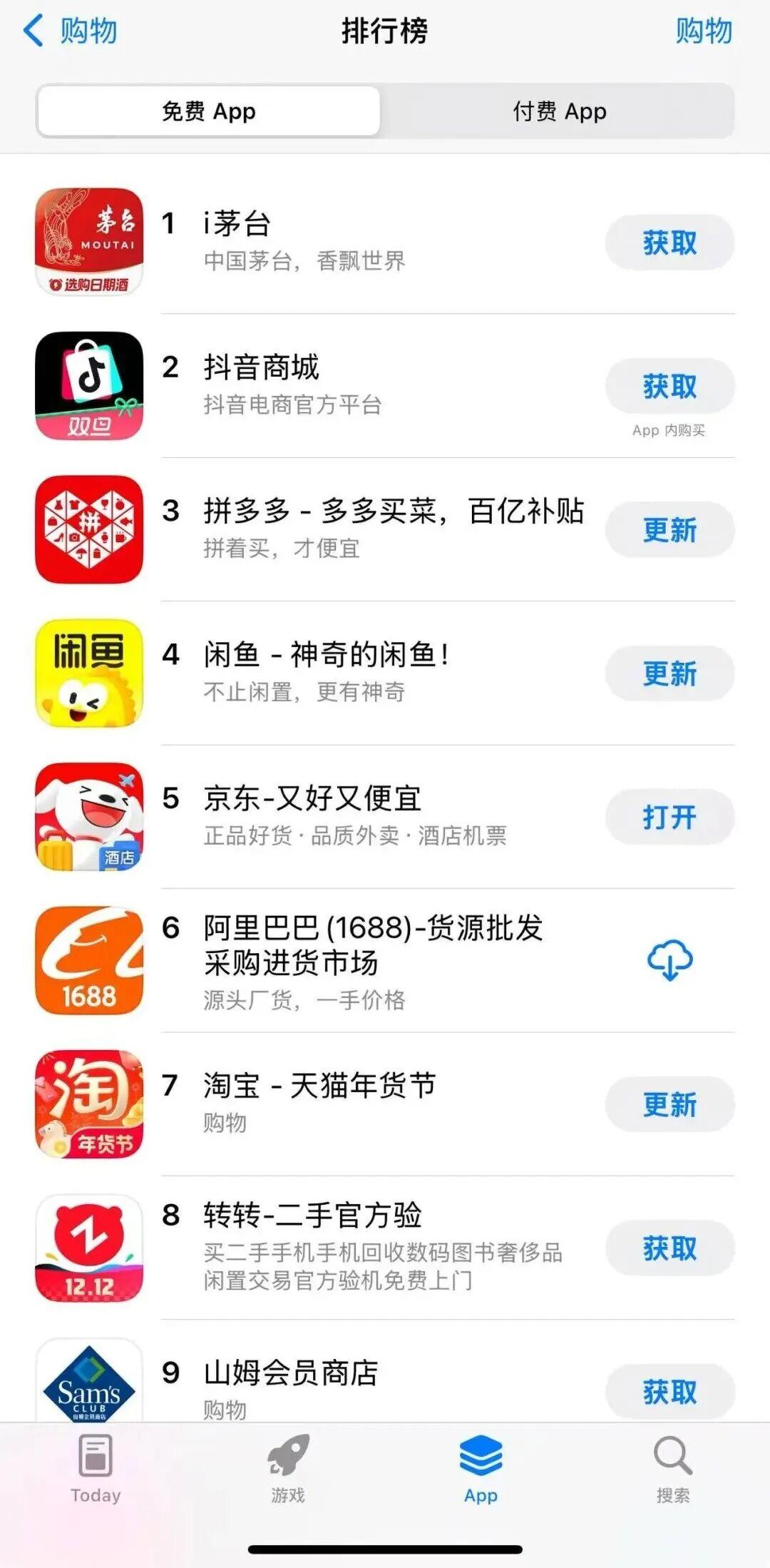 “i茅台”购物免费榜第1