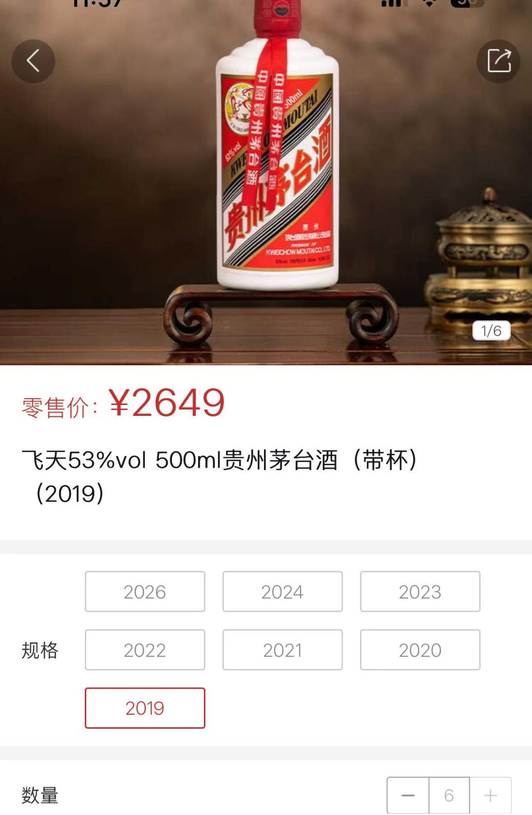 i茅台上显示,飞天茅台还推出了2019年至2026年不同的年份酒,年份越久越贵,2026年新酒价格为1499元,2019年的价格则是2649元,2020年价格为2459元,进一步反映出飞天茅台酒越放越值钱的现象。