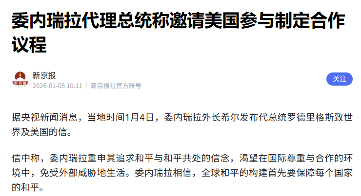 特朗普洋洋得意地说,美国国务卿卢比奥,已经跟委内瑞拉副总统罗德里格斯,通了秘密电话,对方承诺会配合美国行动。