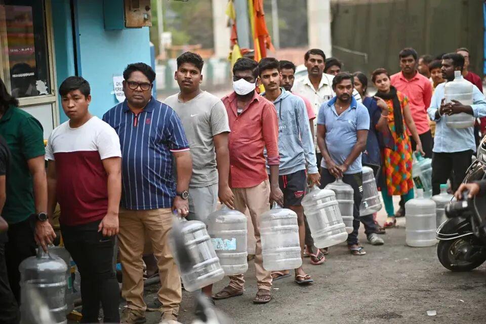 2024年3月14日,班加罗尔水危机,人们只能排队取水