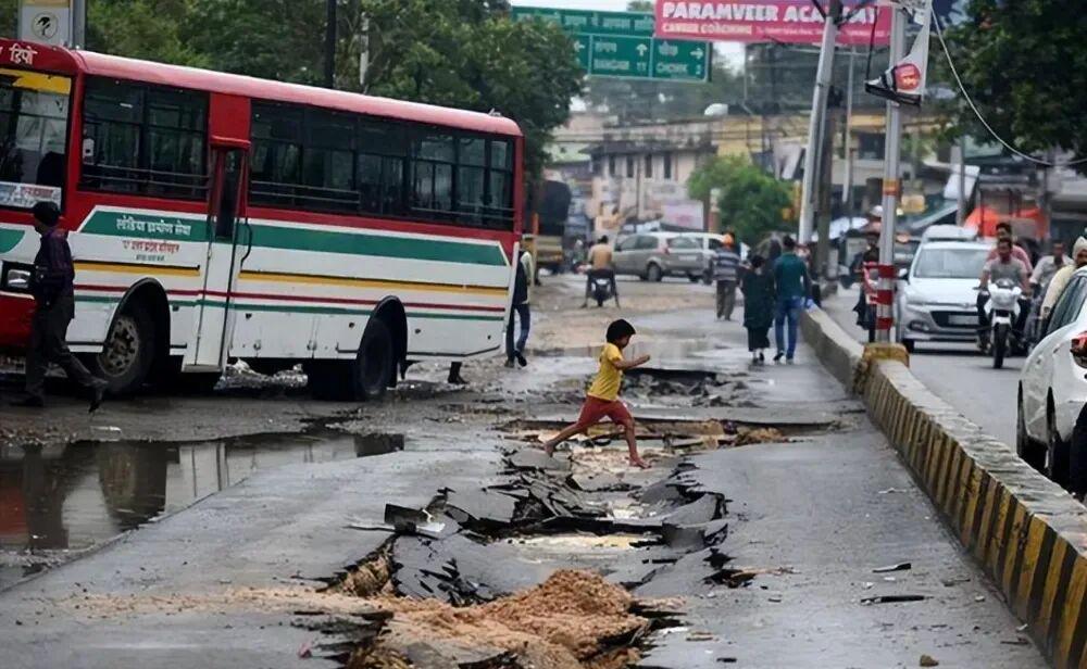 印度当地严重破损的路面
