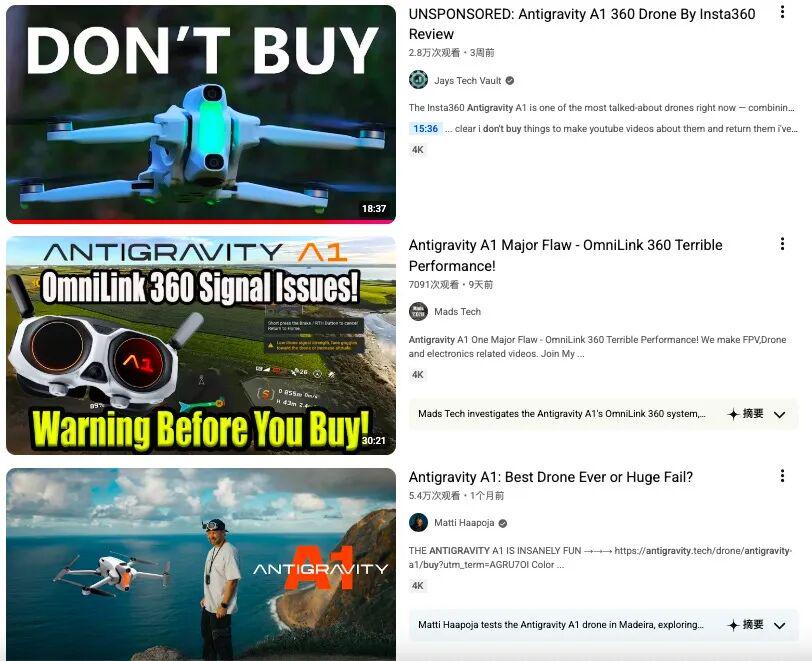影石在社交平台上发现,大量差评使用相同的“客服沟通截图”,以证明“拒绝退货”;原本专注美妆、母婴、穿搭的账号,开始密集发布无人机差评;甚至部分新注册账号,几乎只围绕影翎A1进行负面输出。