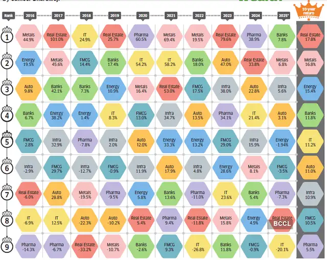 2024–2025:金融与新兴周期(地产、金属)轮动明显。