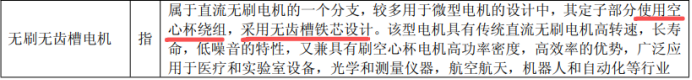 产品上,公司的无刷无齿槽电机也属于空心杯的一种,采用空心杯的绕组设计,具有高功率密度、高运行转速、快速动态响应、无齿槽效应等特点,最高转速可达70000rpm,最大扭矩可达2000mNm;有刷空心杯电机采用空心转子设计,具有高加速度、低转动惯量、无齿槽效应、无铁损、小巧轻便等特点,转速最高可达18000rpm,特别适合频繁启停的应用场合。
