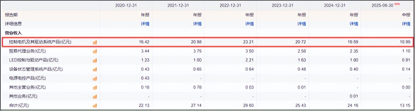 根据2025年半年报进一步细分来看这块主营业务,可以分为三块:控制电机、驱动控制系统和运动控制模组。