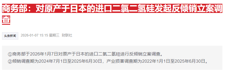 商务部公告,对原产于日本的进口二氯二氢硅进行反倾销立案调查,本次调查确定的倾销调查期为2024年7月1日至2025年6月30日,产业损害调查期为2022年1月1日至2025年6月30日。另外据财联社报道,鉴于日本近期恶劣表现,中国政府正考虑针对性收紧2025年4月4日列管的中重稀土相关物项出口许可审查。