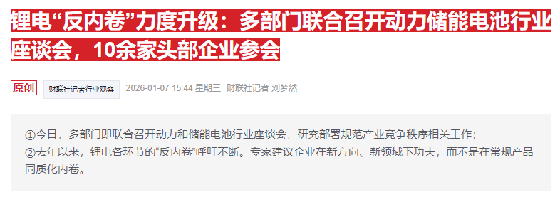 据财联社报道,今日多部门联合召开动力和储能电池行业座谈会,研究部署规范产业竞争秩序相关工作。