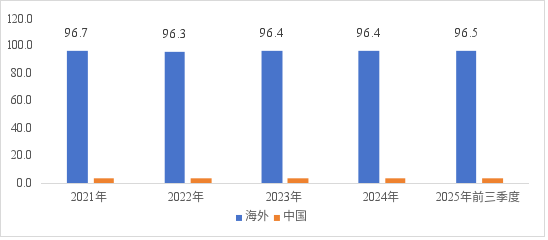 分市场看,公司超96%的营收来自海外市场,其中,北美为最核心市场,业务占比长期稳定在45%以上;欧洲则是近几年增速最快的市场,2022-2025年前三季度,占比从19.9%提升至26.9%。