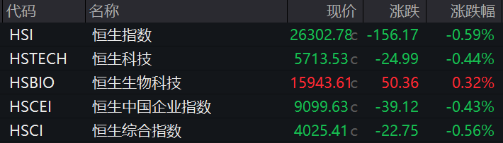 百度集团、阿里巴巴、腾讯音乐跌超1%,腾讯控股跌近1%。