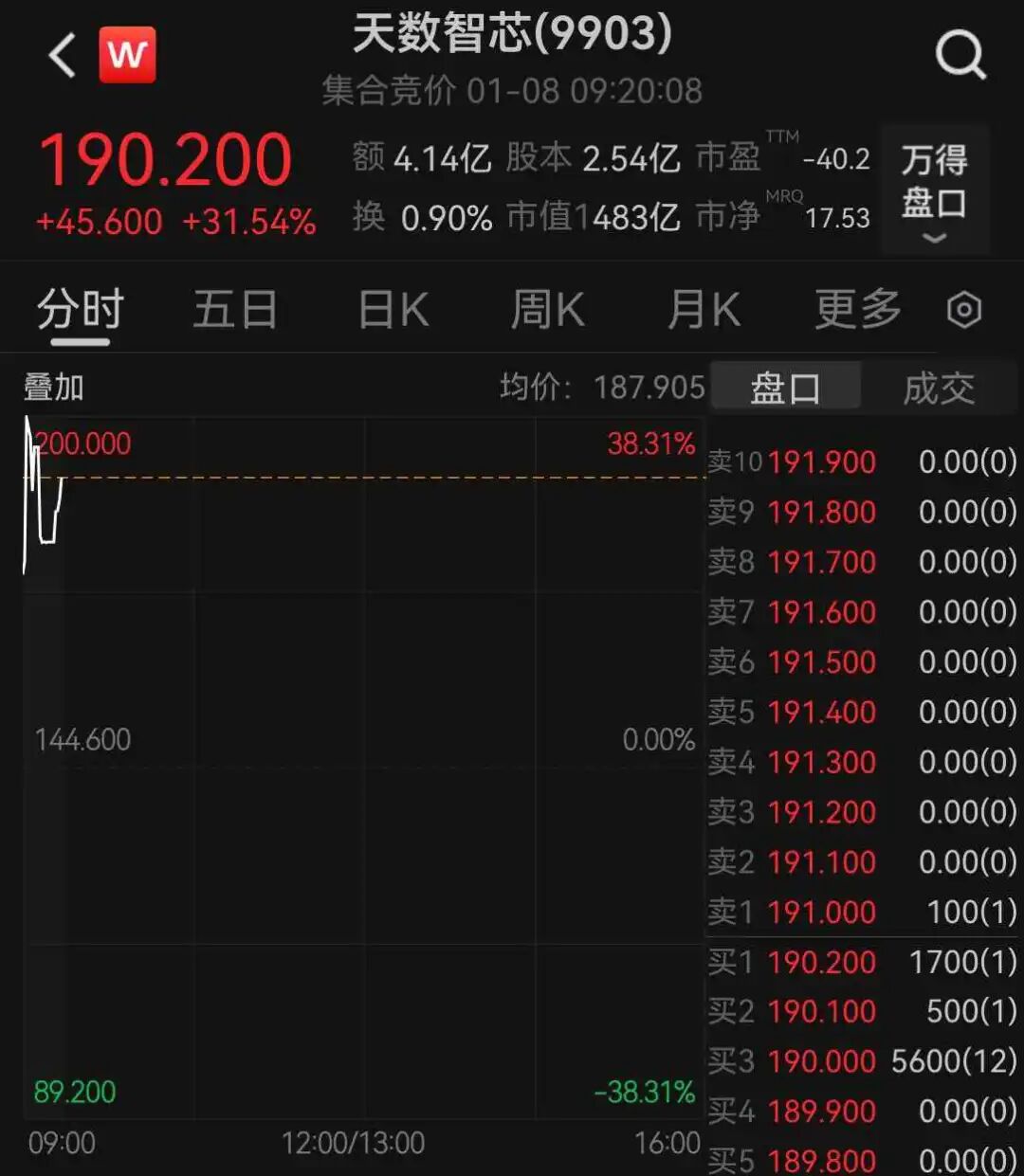 三只新股首日上市均高开,天数智芯高开31.54%,精锋医疗-B高开36.45%,智谱高开3.27%。