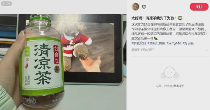 目前在小红书平台,已经陆续有首发体验官发出的关于该款凉茶的内测体验种草文了 ,另外在电商平台,元气森林也在主流的电商渠道上线了好自在清凉茶,笔者发现京东元气森林官旗上架的该款凉茶,规格为500ml×15瓶,原价99,促销价为64.9元。