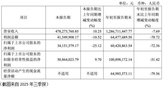 自疫情检测红利消退后,公司业绩自2023年起进入下行通道。财报显示,2023年与2024年,公司营业收入同比分别下降48.42%与2.02%,归母净利润则大幅下滑64.92%和15.06%。若将观察周期聚焦于前三季度,其营收与净利润自2023年起已连续三年同比下滑。2025年前三季报,营业收入同比下滑7.69%,而归母净利润的同比降幅更是高达72.36%。