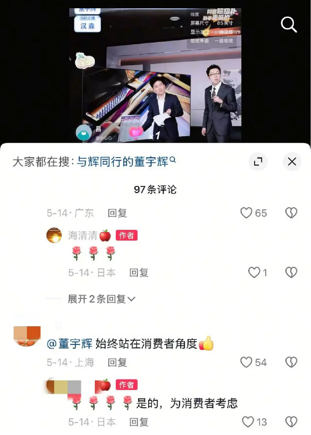 但是关键场次,如外景直播,董宇辉没有一次缺席,始终保持自己在场,这反而强化了董宇辉的号召力,维系了与粉丝的情感连接。