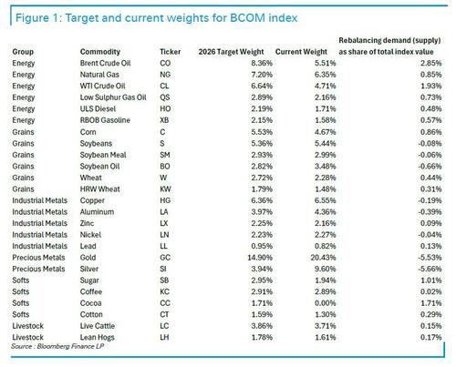 Ghali当时所指的大宗商品指数再平衡,便是彭博大宗商品指数(BCOM)的年度权重再平衡——在周四(1月8日)收盘后,这一商品市场上备受瞩目的“年度时刻”就将到来。