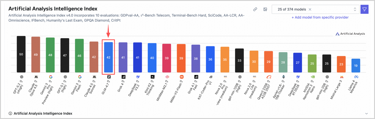 2025年12月,智谱新一代基座模型GLM-4.7在模型综合能力榜单Artificial Analysis登顶全球开源模型与国产模型双料榜首。