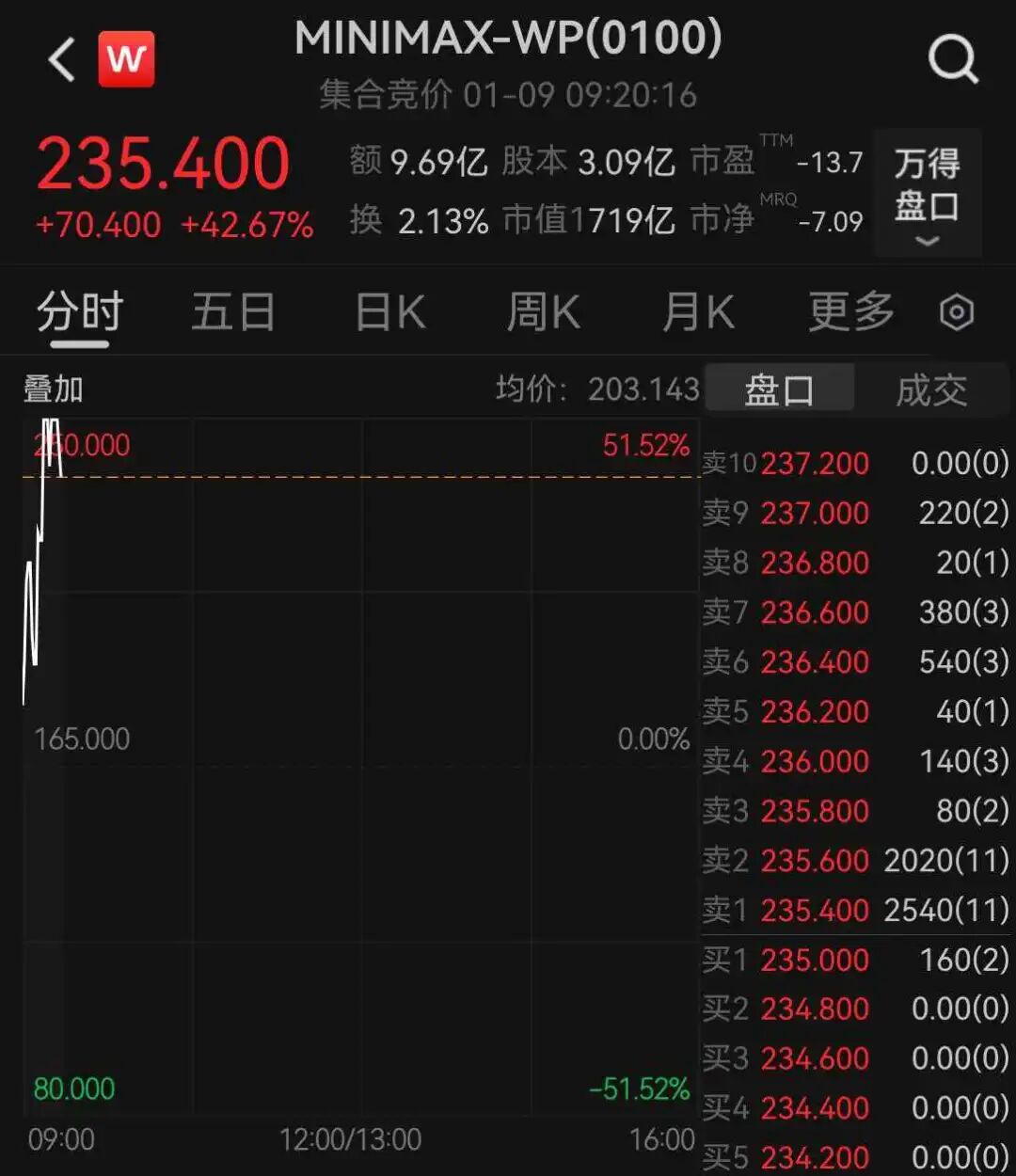 MiniMax上市首日开盘涨42.67%,报235.4港元。MiniMax成立于2022年初,是一家通用人工智能科技公司。本次IPO中,MiniMax发行价确定在发行区间上限,为165港元/股。公司预计发行2538.92万股,募资41.89亿港元。