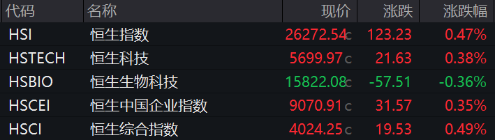 1月9日,香港恒生指数开盘涨0.47%,恒生科技指数涨0.38%。