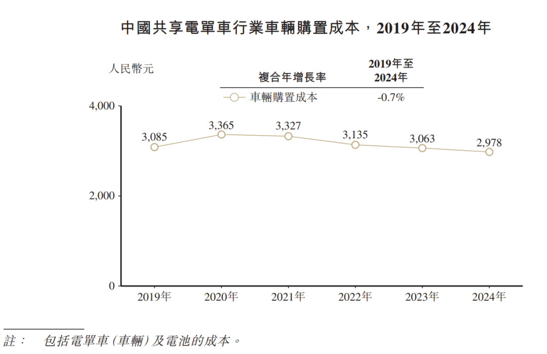 图:国内共享电单车购置成本稳中有降;