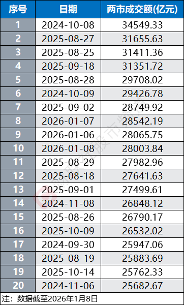 此前在2025年8月25日、8月27日和9月18日,两市成交额在2025年曾三次突破3万亿。