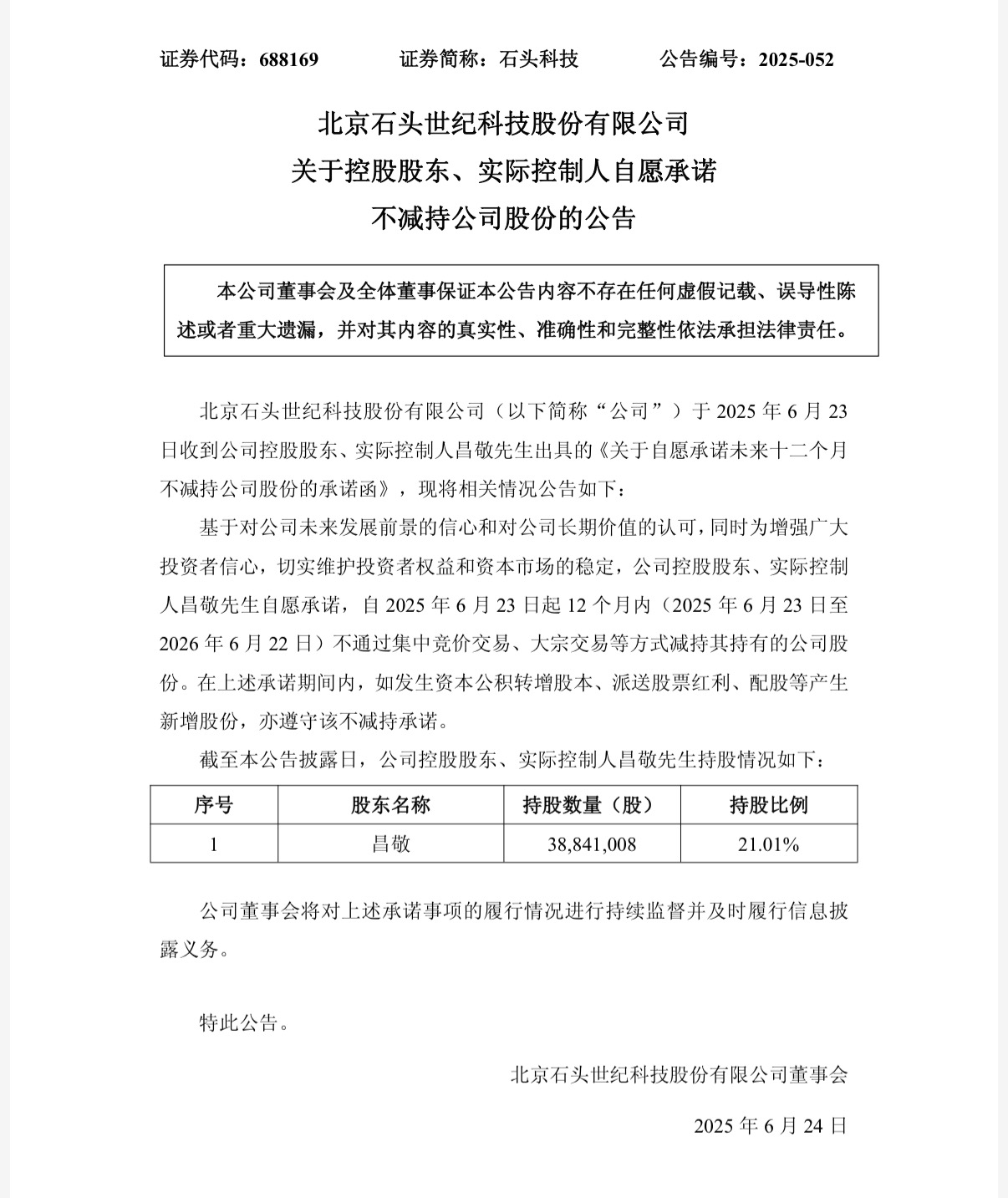 不过,在减持套现风波发酵后,同年年底,石头科技发布公告承诺,昌敬半年内不会再减持公司股票。2025年6月,其再度发布公告强调不减持一事。最新招股书显示,截至公告披露日,昌敬在石头科技的持股数量为38,841,008股,比例为21.01%,其依旧是石头科技的第一大股东和实际控制人。对于创始人套现情况,此前石头科技曾回应南都记者表示,“昌敬此前减持股份,不会对公司治理结构及持续经营情况产生重大影响。实际上,昌敬一直将重心放置于石头科技,负责公司战略和团队搭建” 。