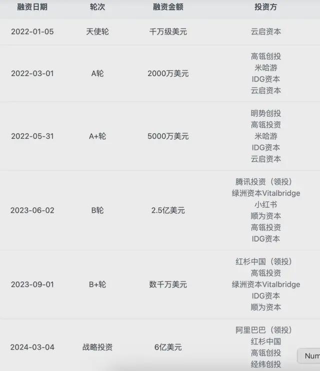 随后,公司的融资进程随着技术突破和“百模大战”的开启而加速:在2022年发布第二代模型后,云启资本不仅连续加注,还有IDG、米哈游、高瓴创投也同样加入。