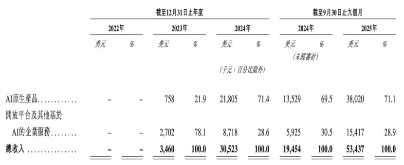 招股书数据显示,海螺AI作为2024年新发布的产品,截至2025年前九个月,其MAU和付费用户量仅次于Talkie/星野,分别达到565万和31万。