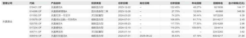 今年永赢基金旗下有4只产品实现翻倍,其中任桀管理的永赢科技智选A以233.29%的总回报,强势摘得2025年公募业绩桂冠。