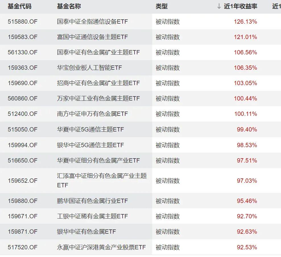 收益方面,国泰基金2025年度指数基金表现更胜一筹。其中,国泰中证全指通信设备ETF(515880)以全年125.81%的惊人涨幅问鼎2025年度ETF涨幅冠军,国泰中证有色金属矿业主题ETF以全年106.56%的收益率位列第三。
