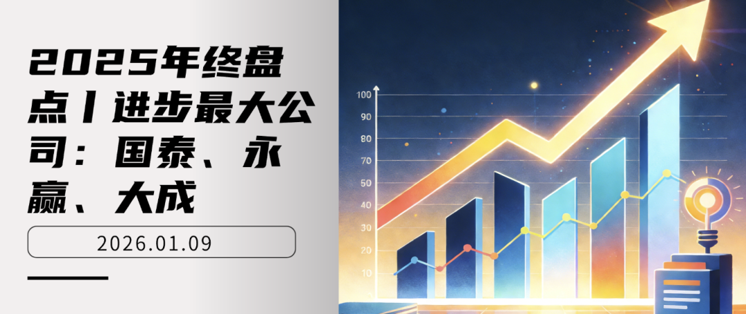 按照往年惯例,我们对2025年进行盘点,今天先来看看在过去一年进步最大的三家基金公司--国泰基金、永赢基金、大成基金。