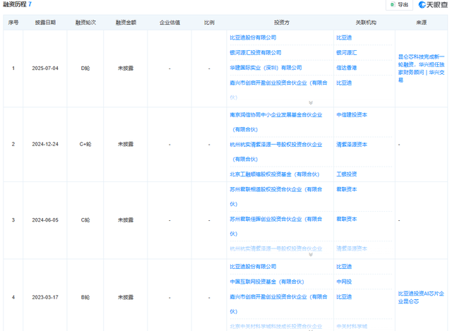 据天眼查显示,截至2025年7月,昆仑芯已完成7轮融资,最新一轮D轮募资2.83亿美元,投后估值攀升至29.7亿美元(约合210亿元人民币),投资方涵盖了国新基金下属高层次人才基金以及中金观博、中银金融等。
