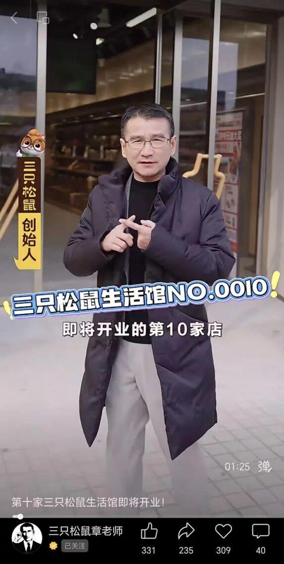 1月9日,三只松鼠(300783.SZ)第十家线下生活馆开业。新店开业前三天,三只松鼠实控人、董事长兼总经理章燎源在个人视频号上发布了“探店”视频,这也是近期章燎源发布的第11支有关生活馆的短视频。